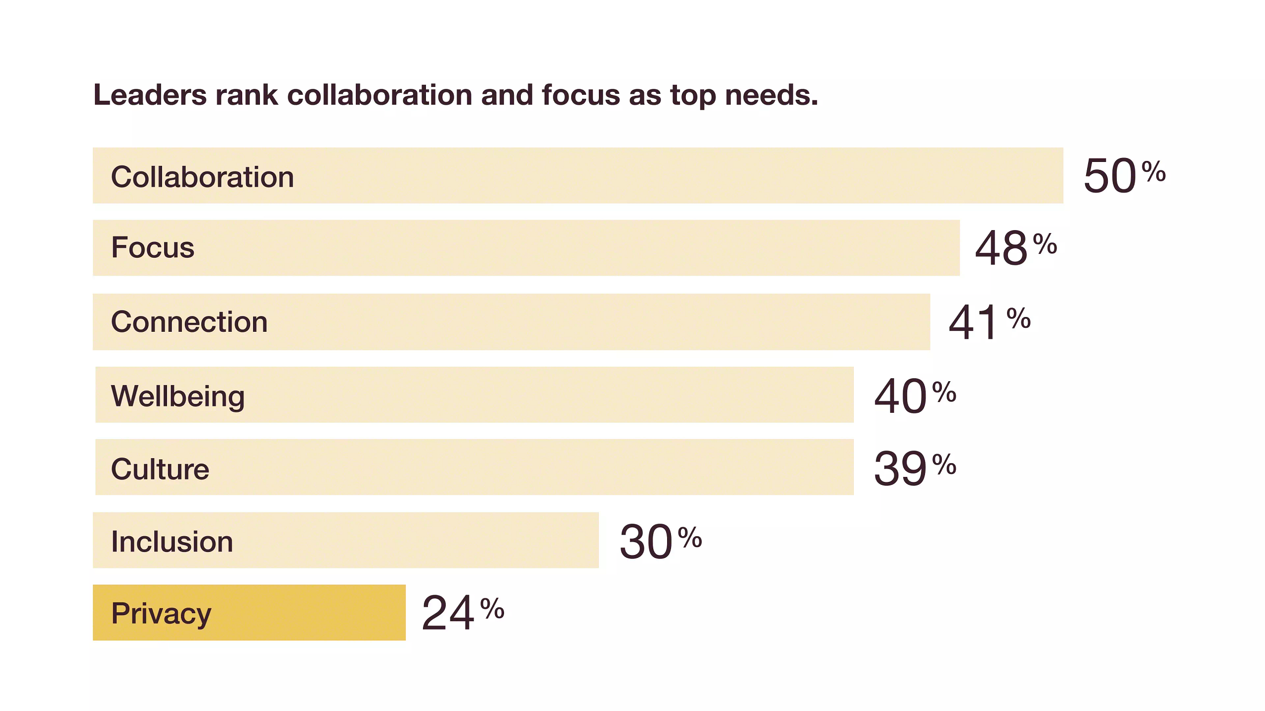 Steelcase employee research has shown that privacy is employees’ #1 need. Yet, for leaders, it’s last on the list compared to other workplace improvements.
