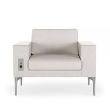 Armless social love seat with customizable upholstery, metal leg finishes, and wood trim options.