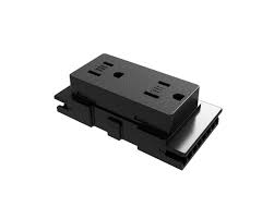 Black duplex receptacle with 3D design, circuit #4, controlled circuit stamp, common ground, and (2+2) wiring configuration.