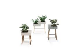 ENVI planter with solid ash legs, ultra high strength waterproof molded polyethylene construction, and brown nylon nail-in glides.