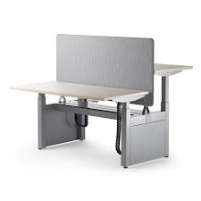 Back-to-back 4-seat height-adjustable desk base with programmable controller and cable management for 29"D x 58"W tabletops.
