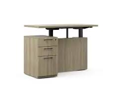 A 24" deep by 48" wide right-hand return desk with full pedestal file/file configuration, HPL top, and chai laminate finish.