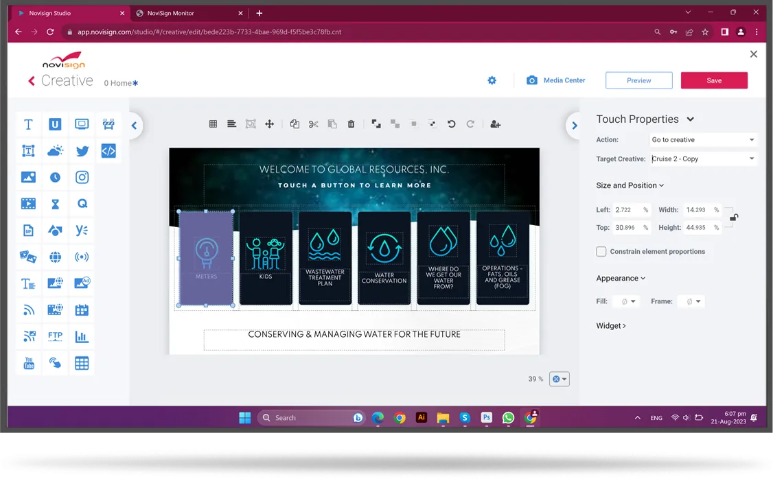 Cloud-based digital signage platform that enables businesses to create, manage, and display content across multiple screens. Features drag-and-drop content creation tools and remote management capabilities for corporate communications and advertising displays.