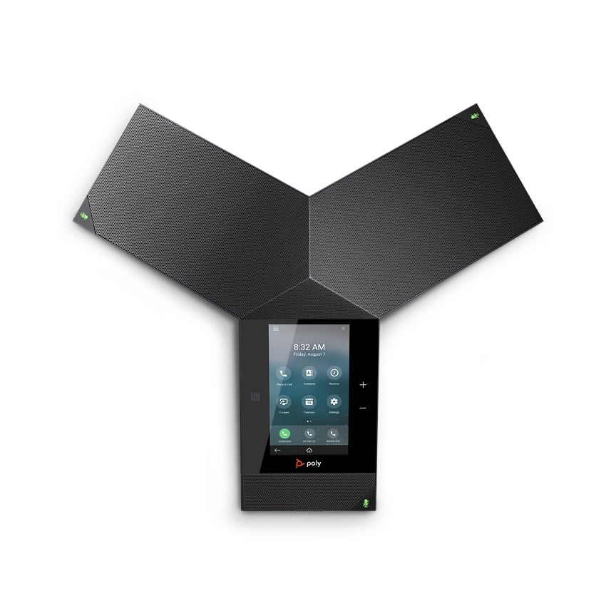 An advanced conference phone designed for executive boardrooms and large conference spaces. Offers HD voice quality with 360-degree microphone pickup and intuitive touchscreen interface.