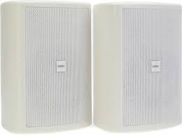 6.5-inch two-way surface speaker with 70/100V transformer, 8-ohm bypass, and 130-degree conical coverage including yoke mount in white finish.