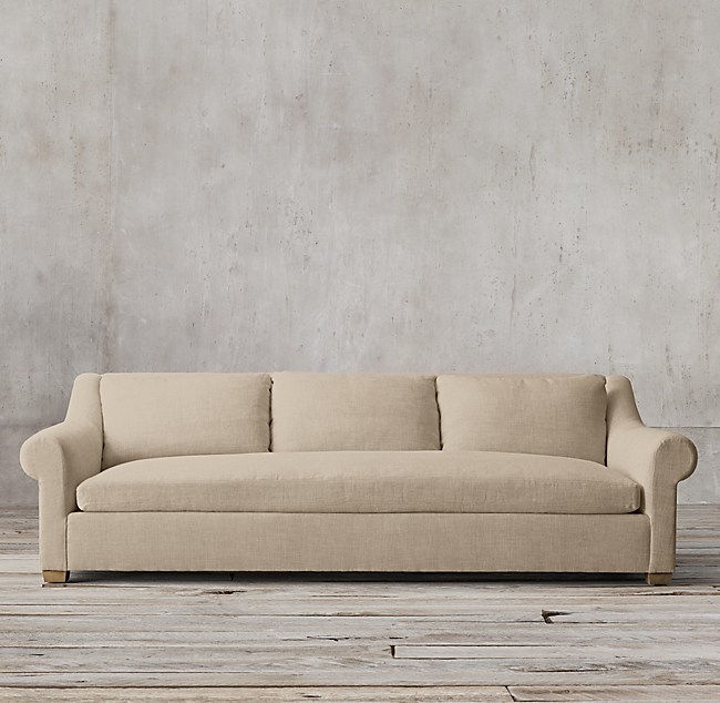 An elegant sofa with traditional roll arms and refined proportions, available in various commercial-grade fabrics. Suitable for reception areas and executive lounges.
