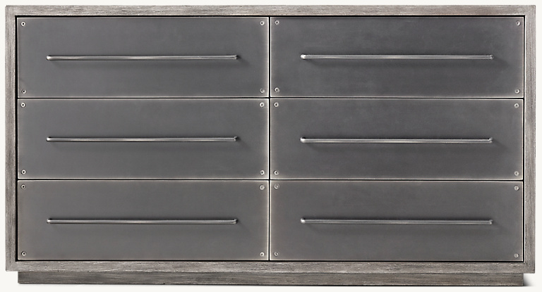 Multi-drawer storage unit inspired by vintage workshop tool chests with metal construction. Offers substantial storage capacity while serving as a design statement piece.