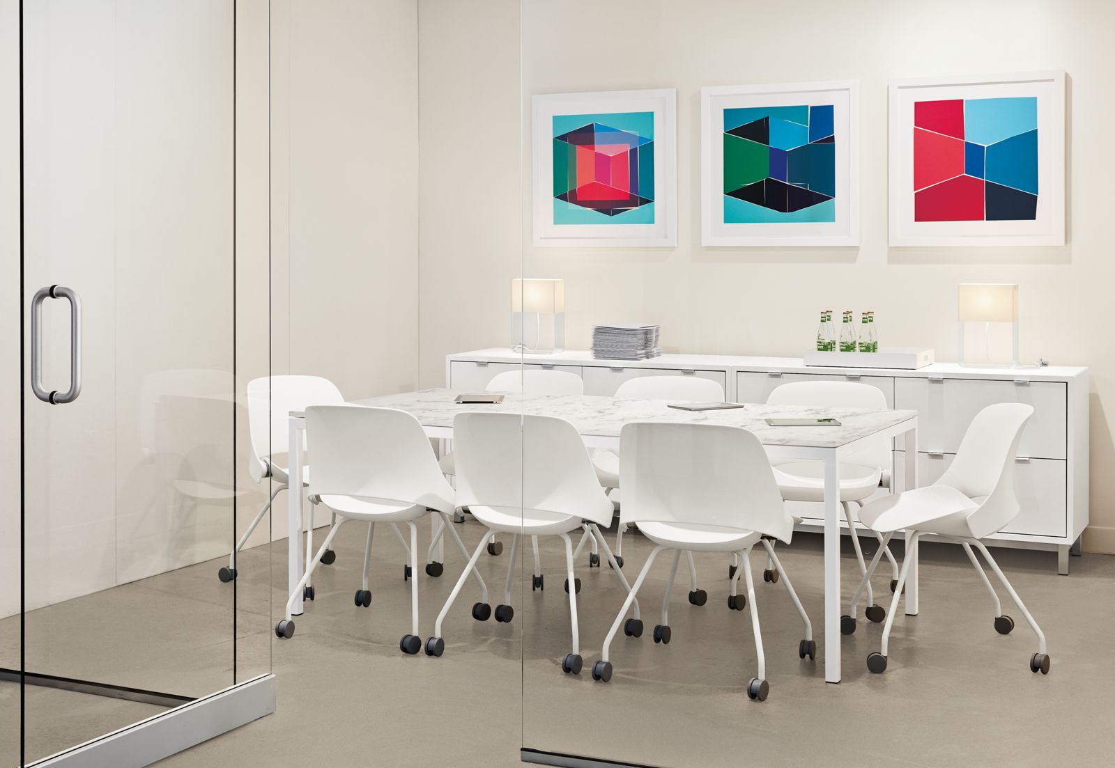 A sleek, modern conference table featuring clean lines and a minimalist design. Available in multiple sizes and finishes to accommodate various meeting room configurations.