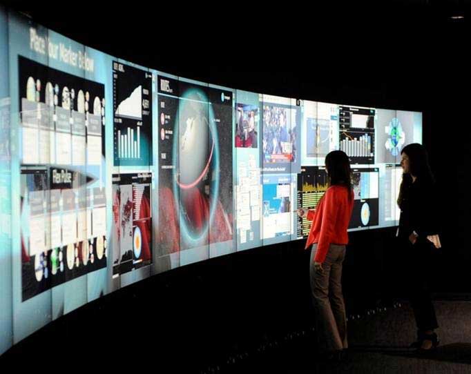 Multi-touch interactive display panel for meeting rooms and collaborative workspaces. Supports wireless connectivity and multi-user interaction for enhanced workplace productivity.