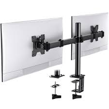 Dual mount monitor arm with 4-inch angled dynamic links supporting 100 x 100mm VESA mounting pattern.