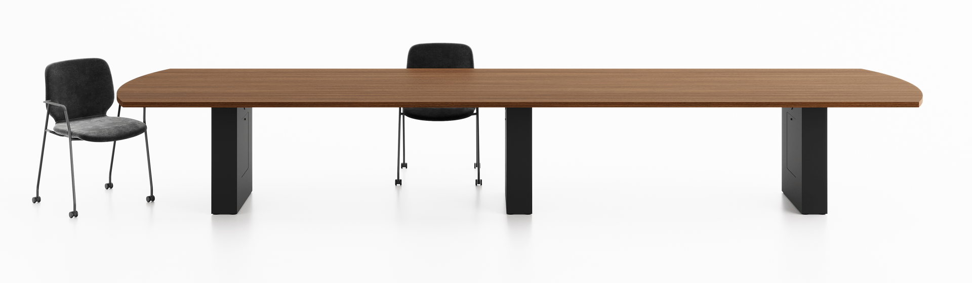 Sophisticated conference table system offering various sizes and finishes for executive meeting rooms. Features integrated technology solutions and premium laminate surfaces.