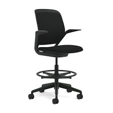 Cobi swivel stool with fixed arms, sewn upholstery, and optional casters for flexible workspace seating.