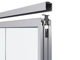 Aligned ladder pull door hardware with satin chrome finish for 18-inch applications.