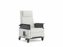 Standard dual fold arm recliner with 23-inch seat width, Brisa ASH finish, headrest, central lock casters, and push bar.
