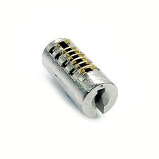 Front removal lock plug and keys with polished chrome finish for secure furniture access.