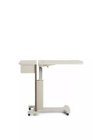 Opus overbed table with plastic surface and H-base design for healthcare and institutional environments.