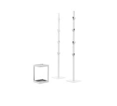 Freestanding coat hanger with white lacquered metal structure and white plastic interior finish.