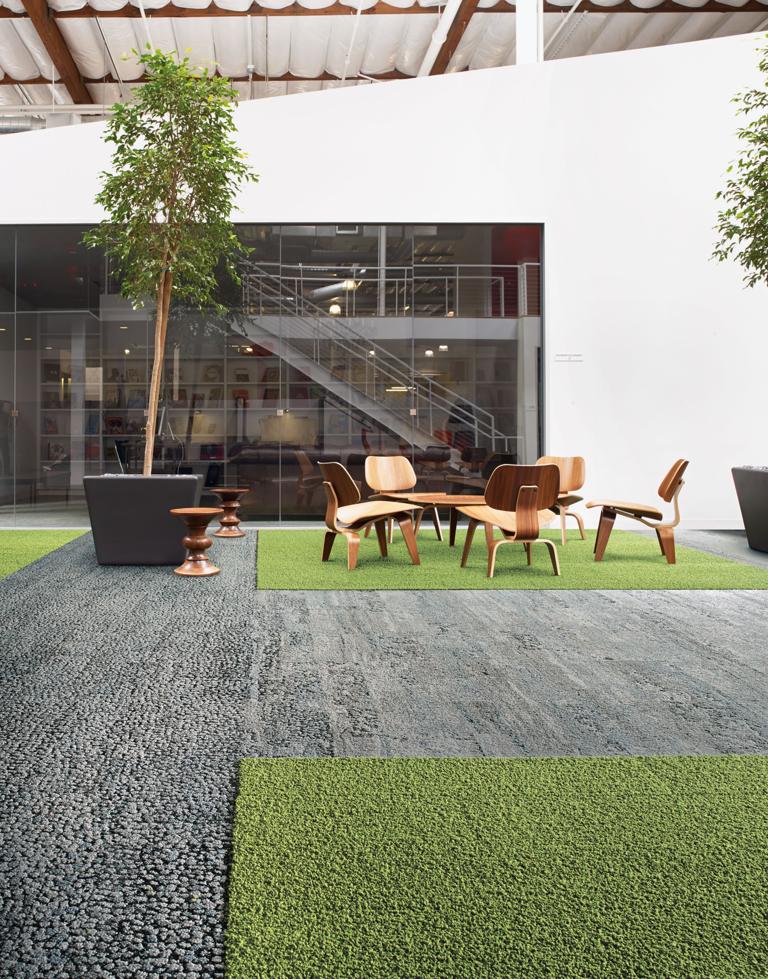 Biophilic-inspired carpet tiles that bring natural elements into interior spaces. This collection features organic patterns and textures designed to enhance wellbeing and productivity in commercial environments.