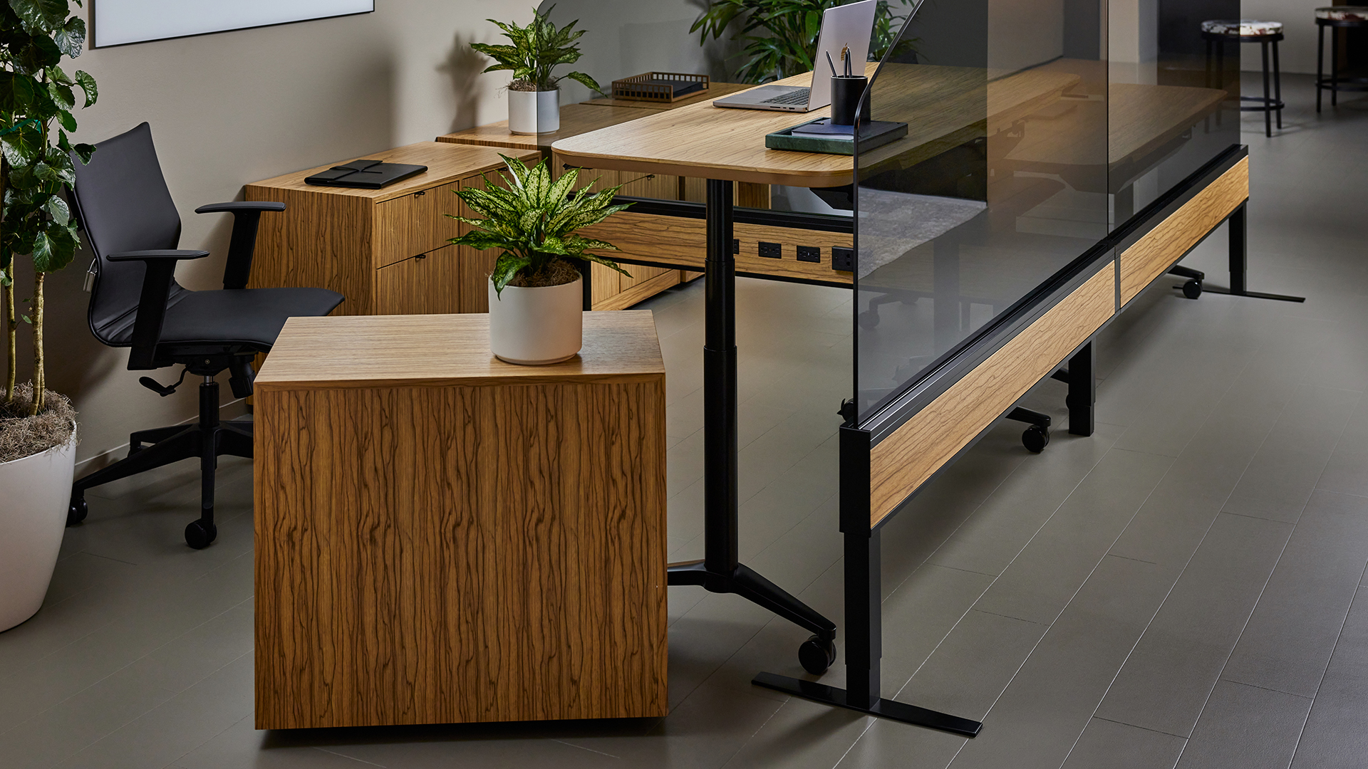 Versatile height-adjustable table perfect for training rooms and flexible workspaces. Electric height adjustment allows seamless transition between sitting and standing positions.