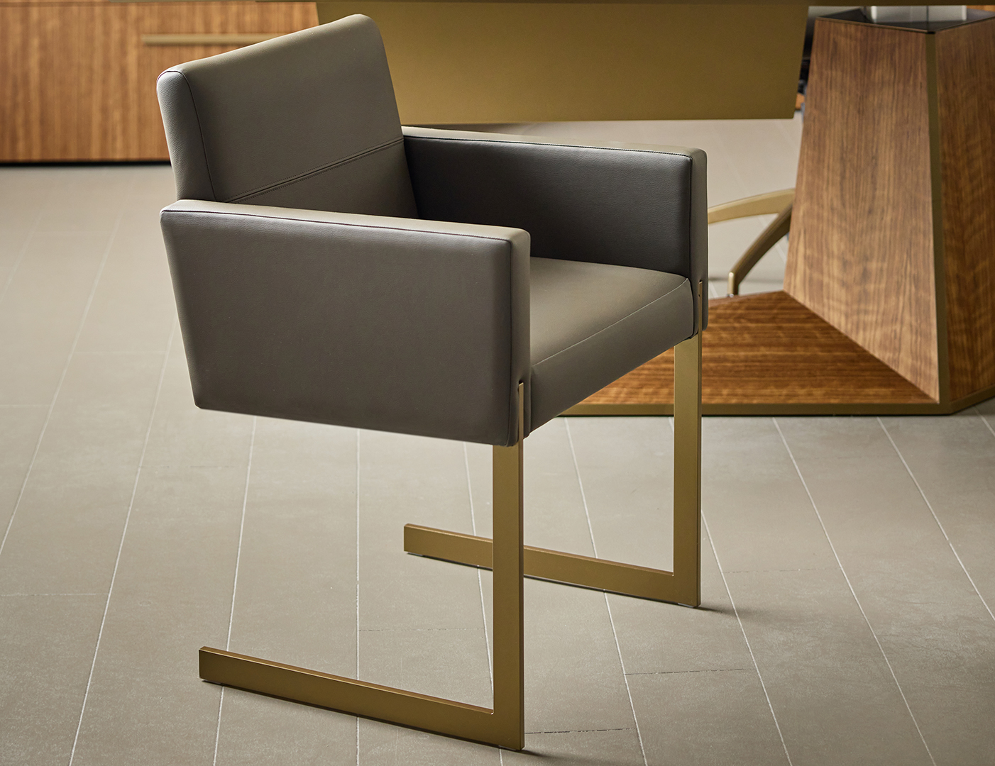 Contemporary guest seating with clean architectural lines suitable for reception areas and conference rooms. Available with or without arms and multiple base options including cantilever and four-leg designs.