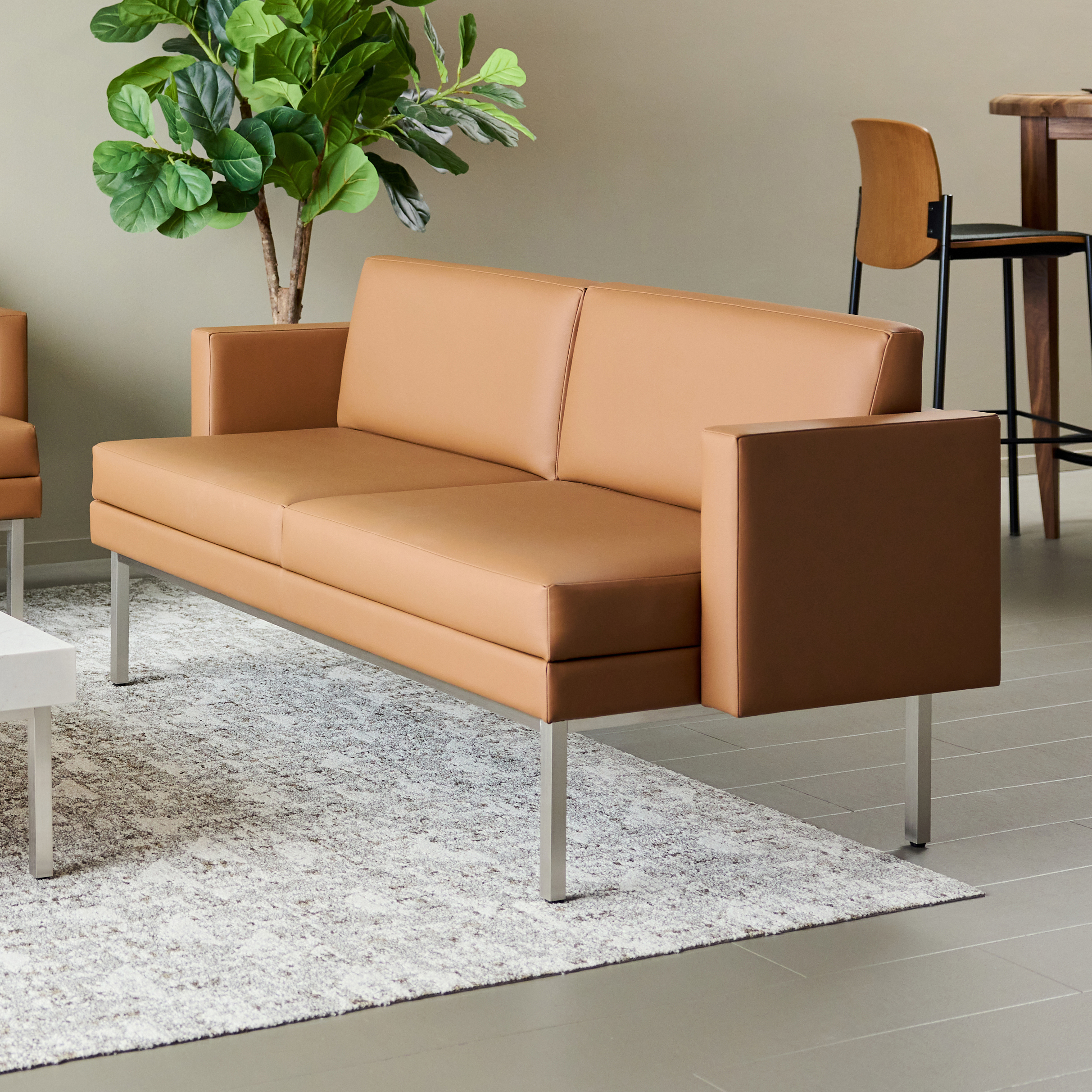 Modular lounge seating system designed for collaborative spaces and reception areas. Features clean lines and customizable upholstery options with connecting power and data capabilities.