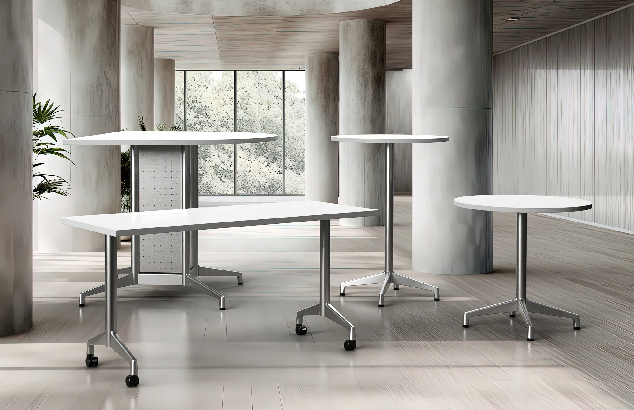 An elegant conference table with boat-shaped top and sophisticated wood finish options. Features integrated power and data solutions to support modern meeting requirements.